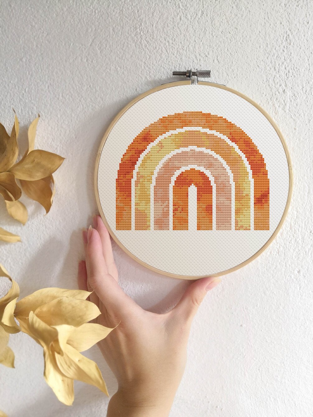 Boho rainbow cross stitch pattern Modern cross stitch PDF Geometric x-stitch Burnt orange rainbow nursery