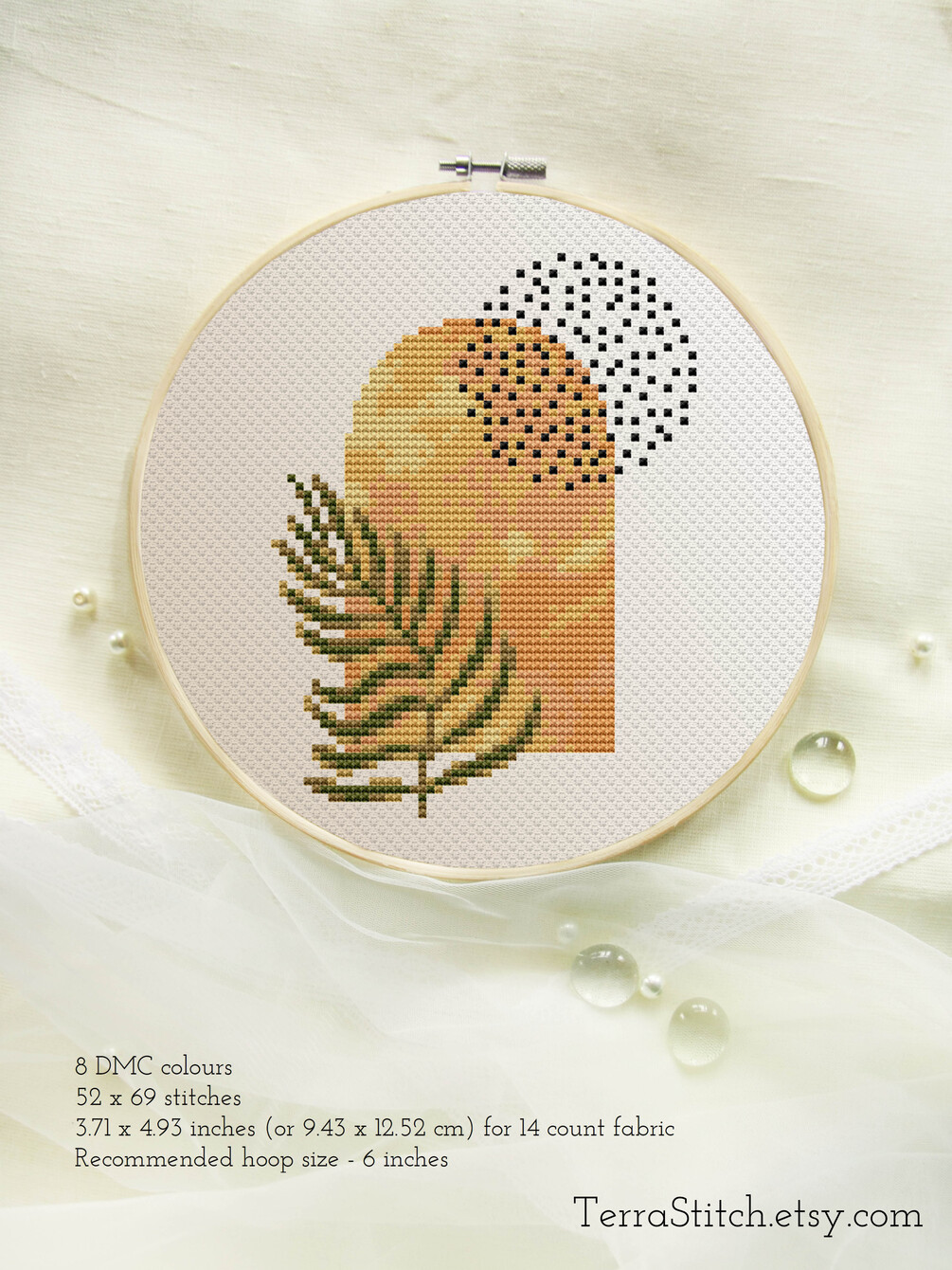 Boho cross stitch pattern Contemporary cross stitch PDF Palm leaf xstitch Botanical Mid century modern
