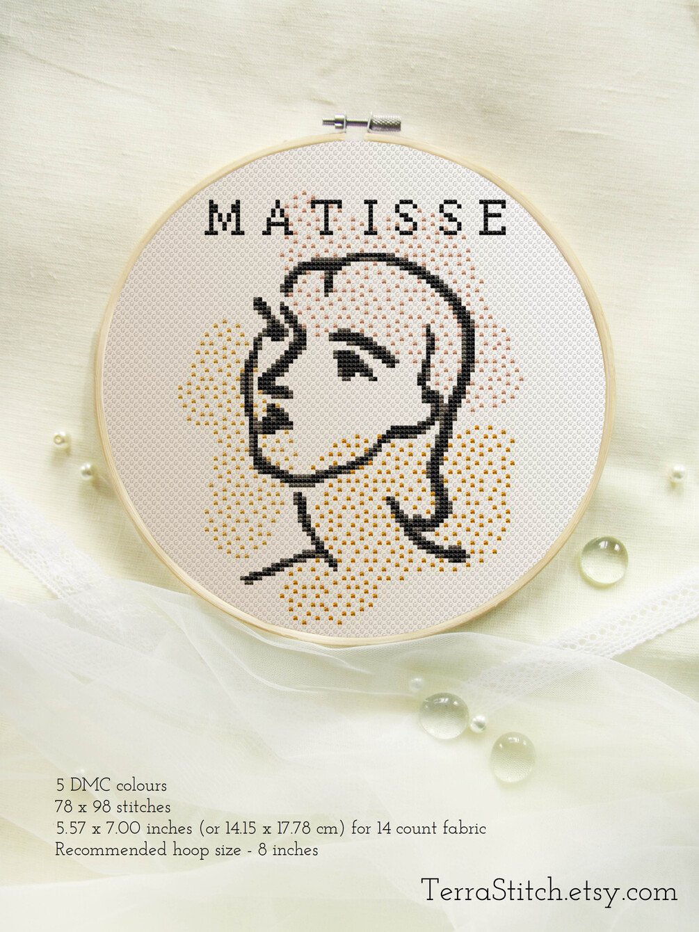 Henri Matisse inspired cross stitch pattern PDF. Contemporary embroidery.