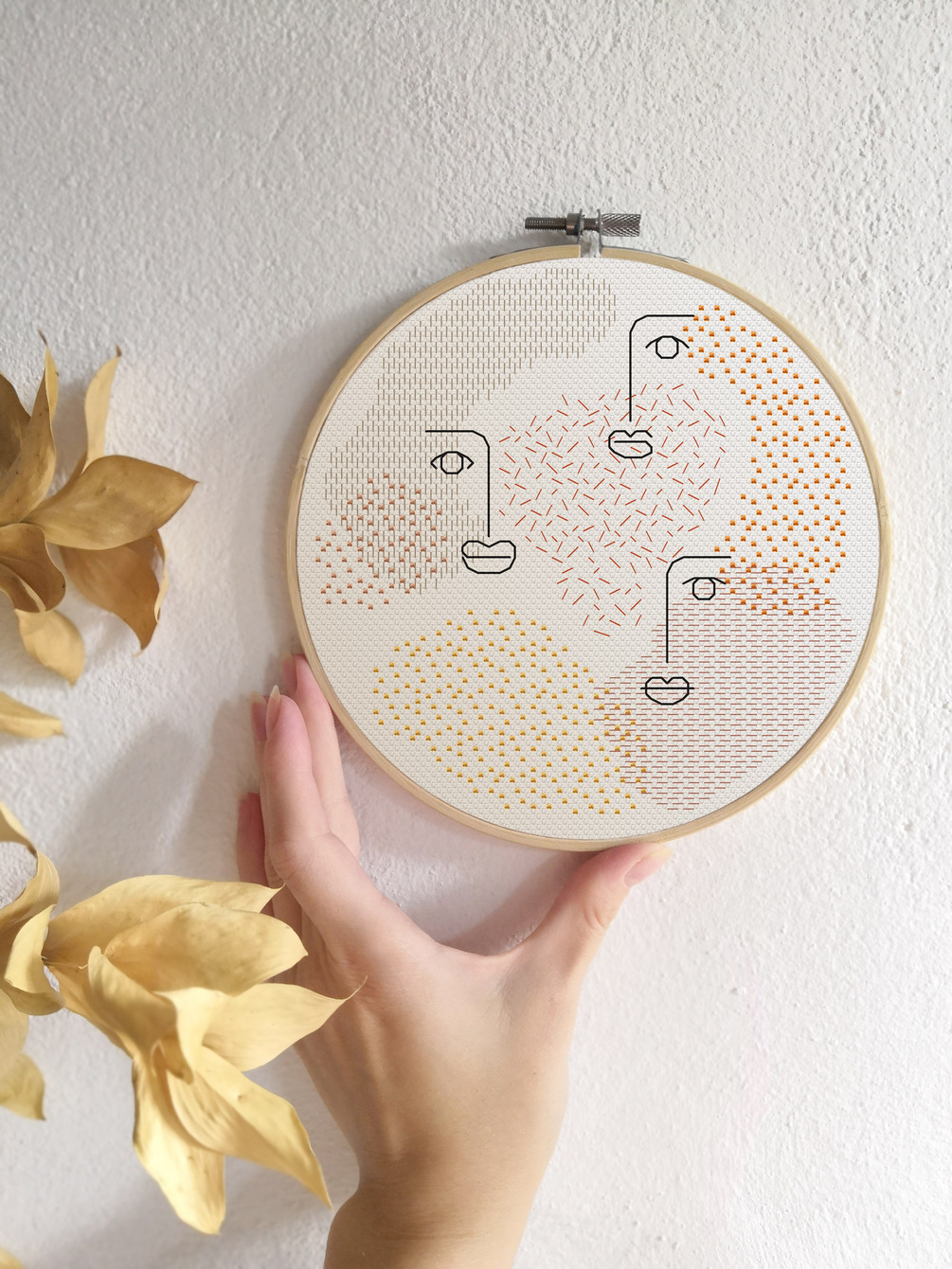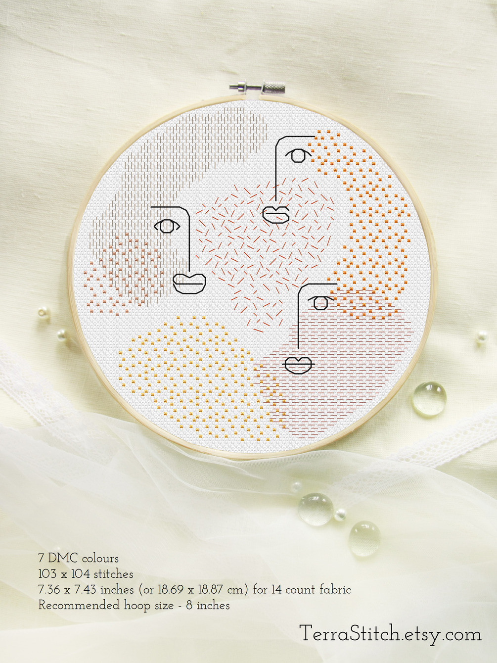 Abstract cross stitch pattern Modern cross stitch PDF Boho faces Modern Hand embroidery pattern Contemporary xstitch