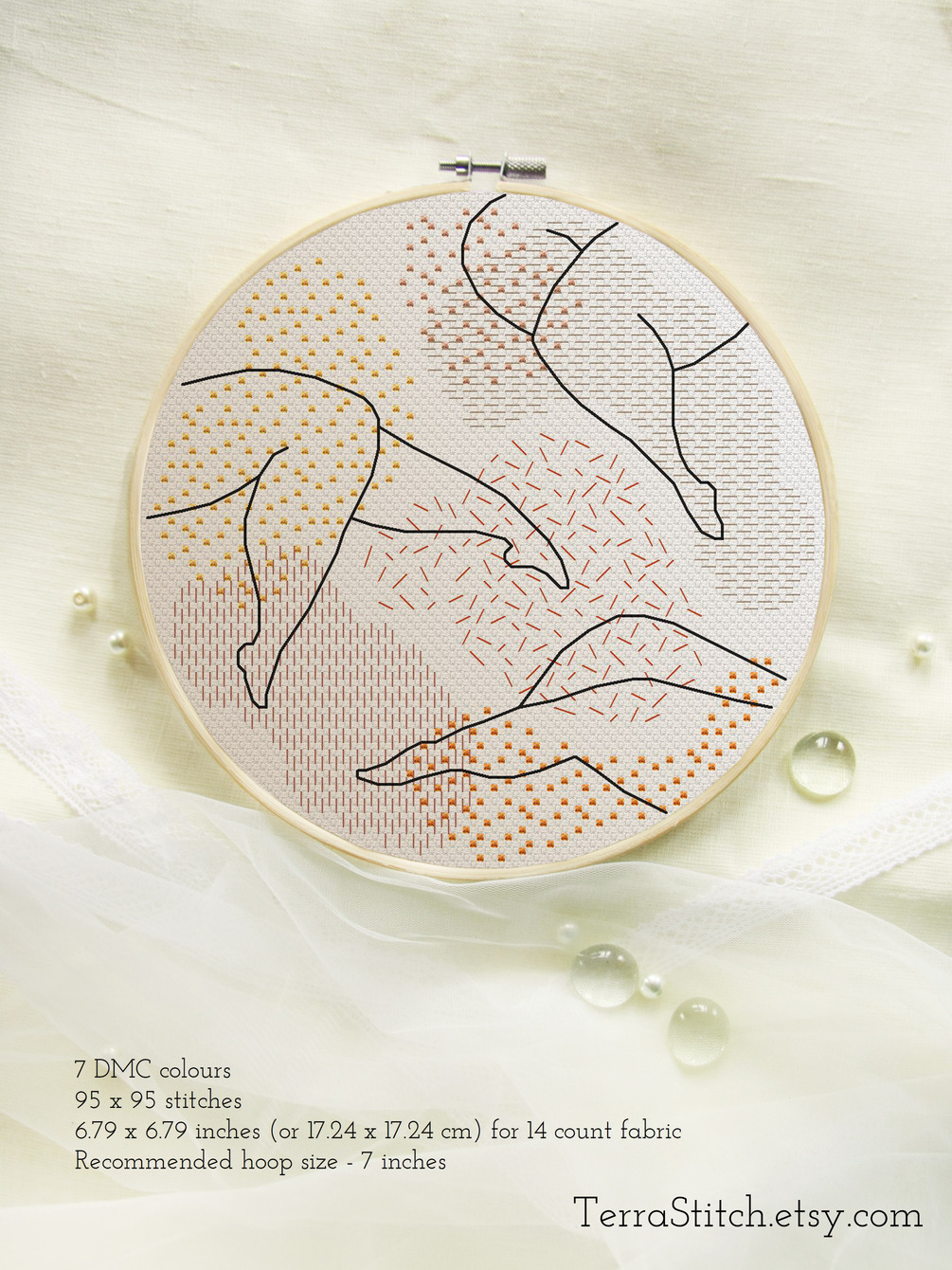 Modern cross stitch pattern Female cross stitch PDF Abstract hoop art Hand embroidery pattern Woman legs