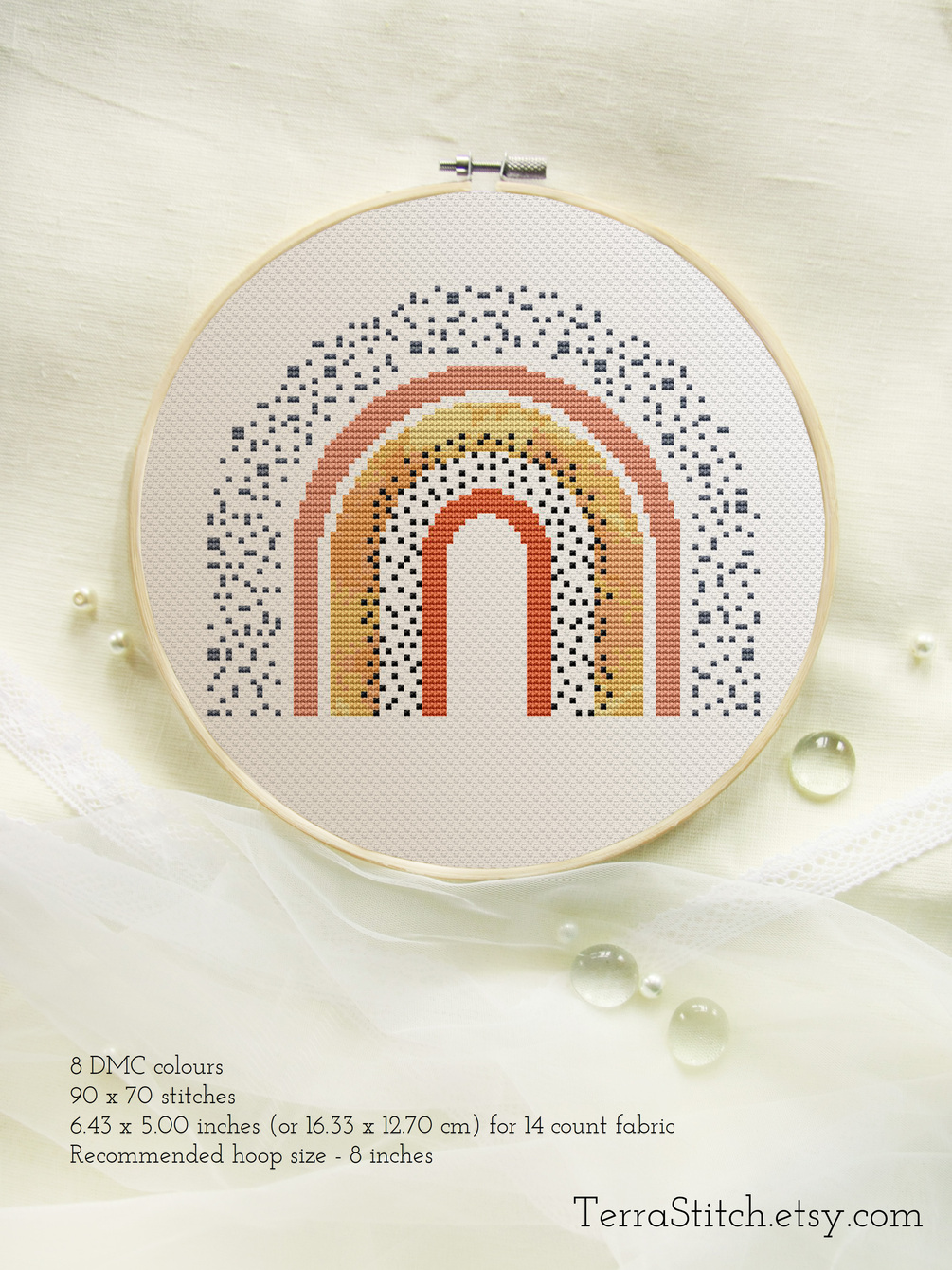 Modern boho rainbow cross stitch pattern PDF. Abstract cross stitch.