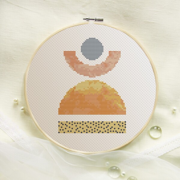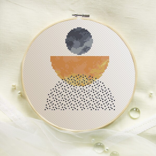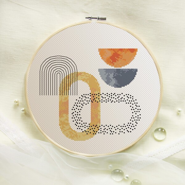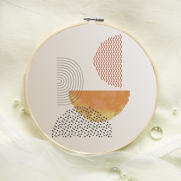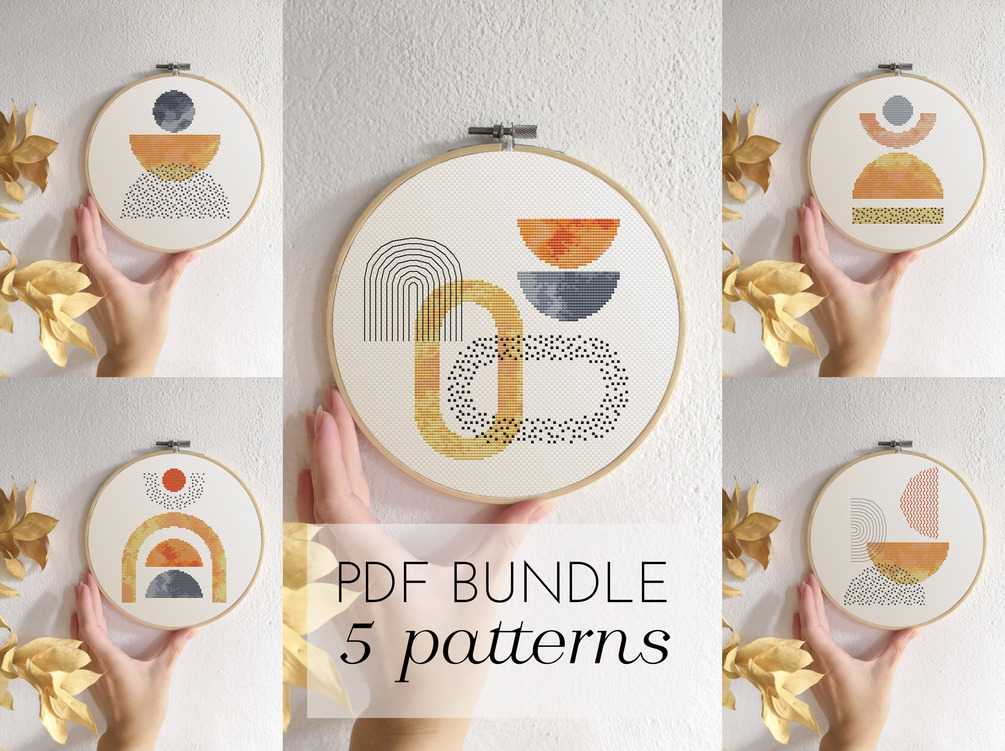 Set of 5 modern abstract cross stitch patterns PDF. Contemporary embroidery.