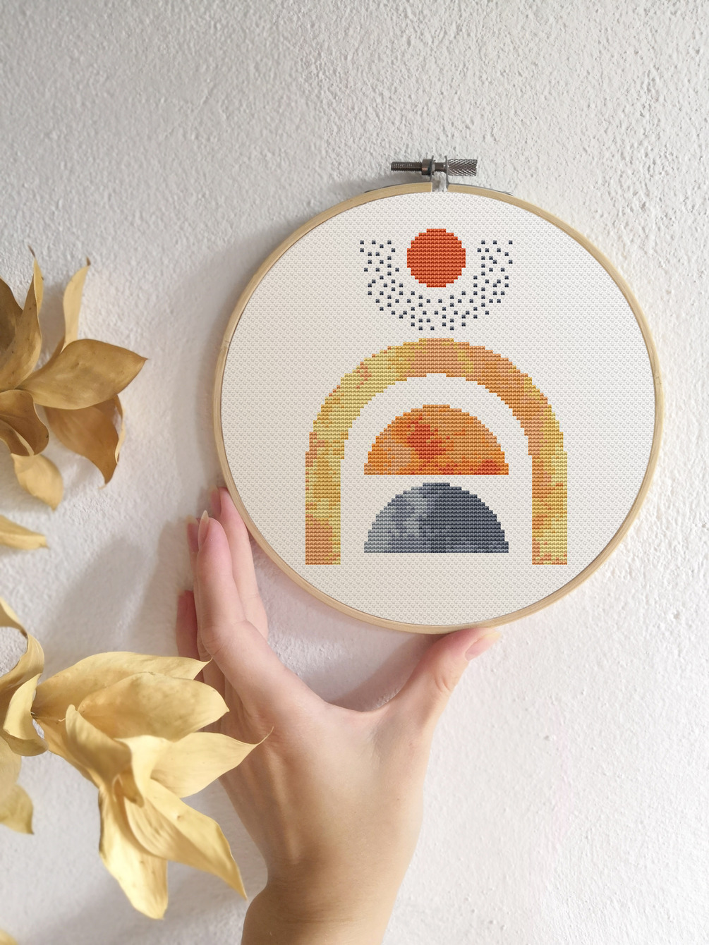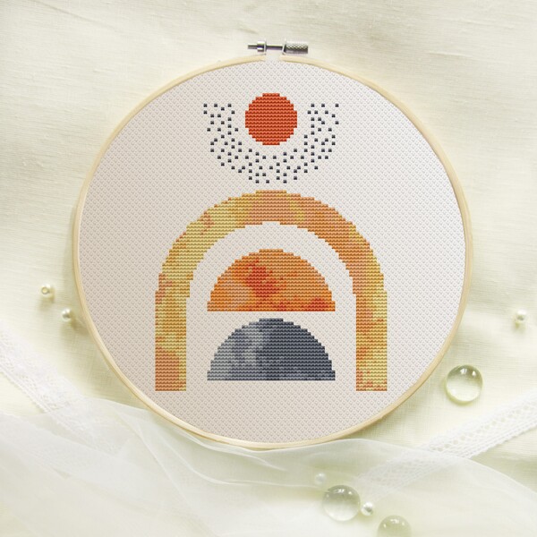 Cross stitch pattern set of 5 Geometric cross stitch PDF Boho rainbow and sun Contemporary x-stitch
