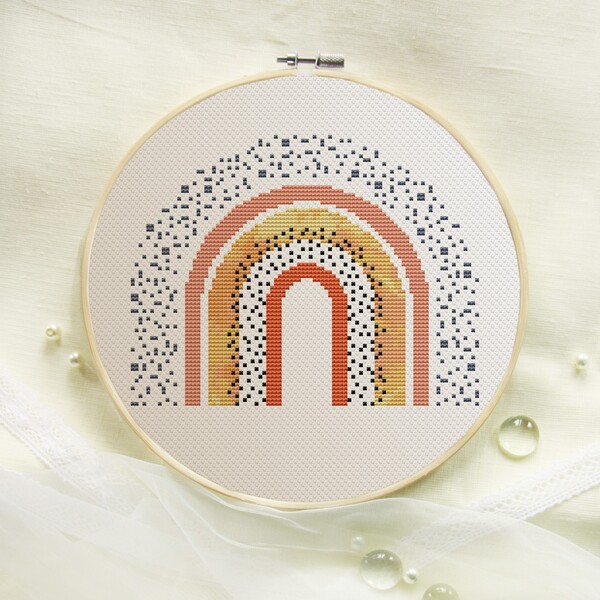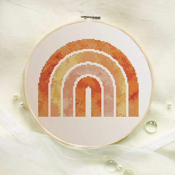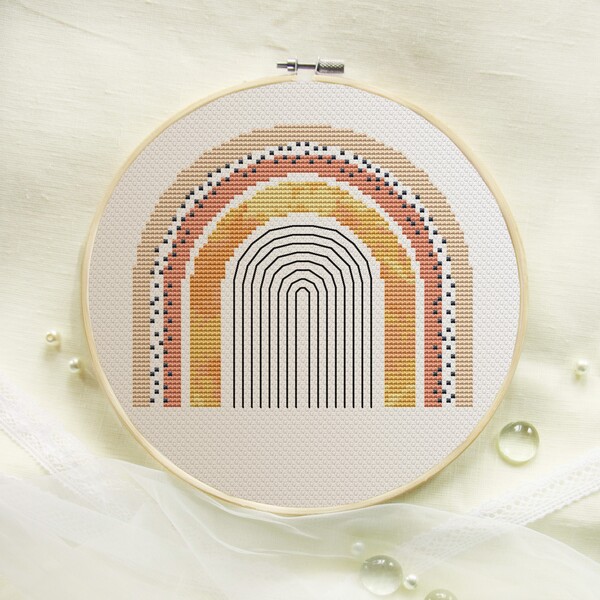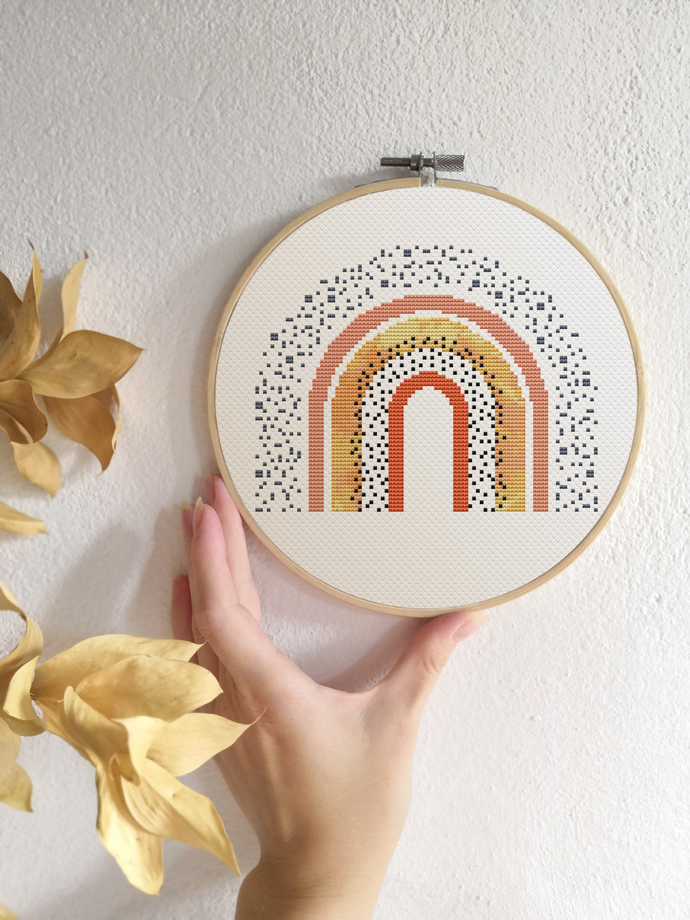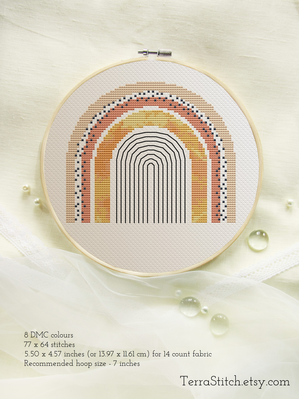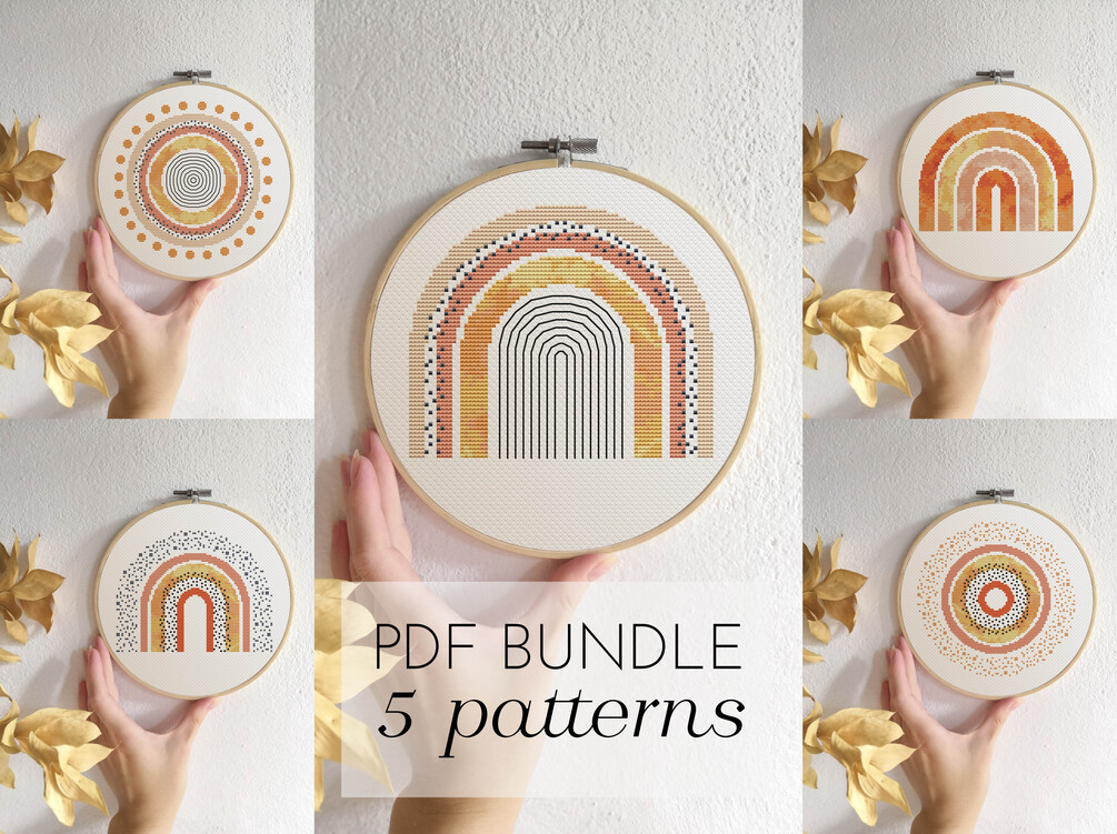 Rainbow cross stitch pattern Bundle Modern cross stitch PDF for beginners Mid century modern Boho cross stitch Orange sun