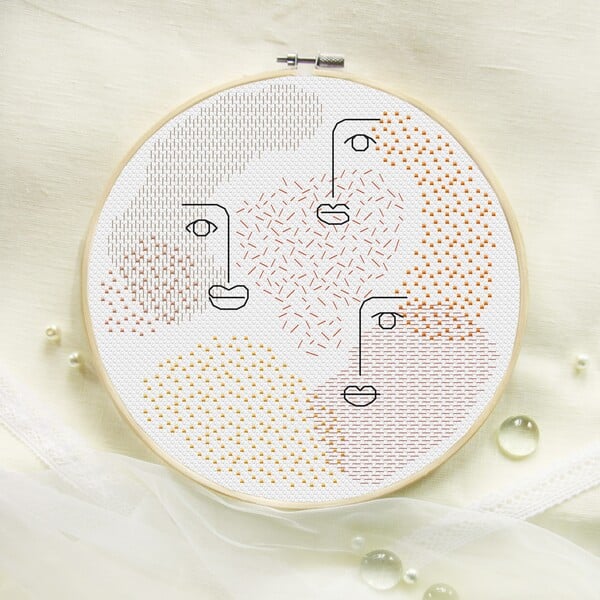 Set of 5 modern abstract cross stitch patterns PDF. Contemporary embroidery.